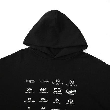 Balenciaga Multi-Logo Print Hoodie Black