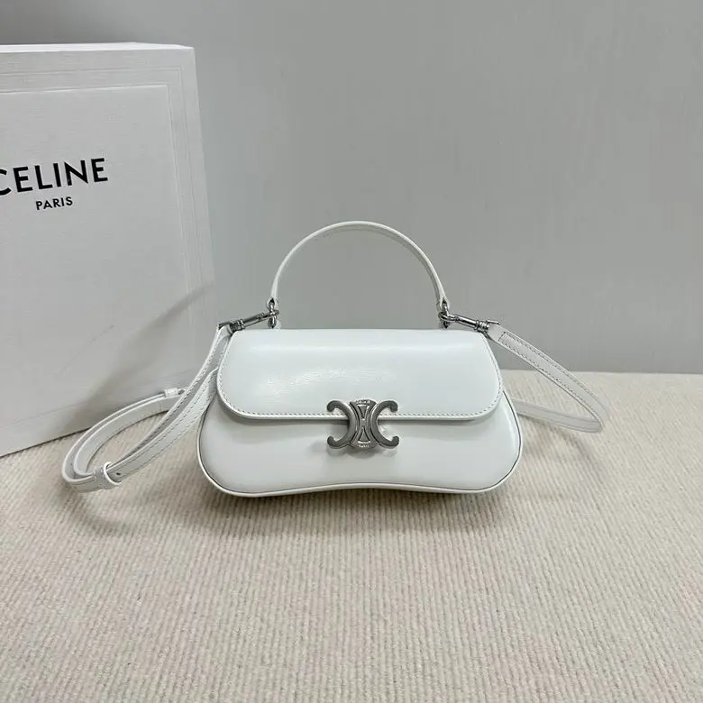 Celine Lola In Shiny Calfskin Leather Bag White