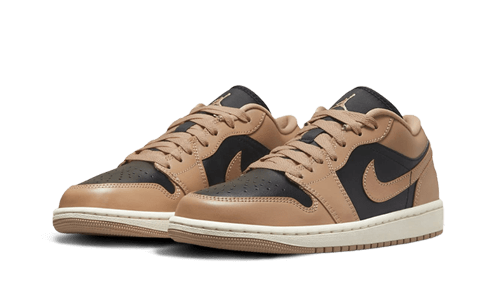 LàAir Jordan 1 Low Desert rivelare una base in pelle nera accompagnato da sovrapposizioni in pelle beige. Il logo delle ali ricamato sul tallone è d’accordo mentre il salto sulla scheda del nylon ricorda le sovrapposizioni. Il tutto è punteggiato da una suola condivisa tra il bianco rotto e beige.