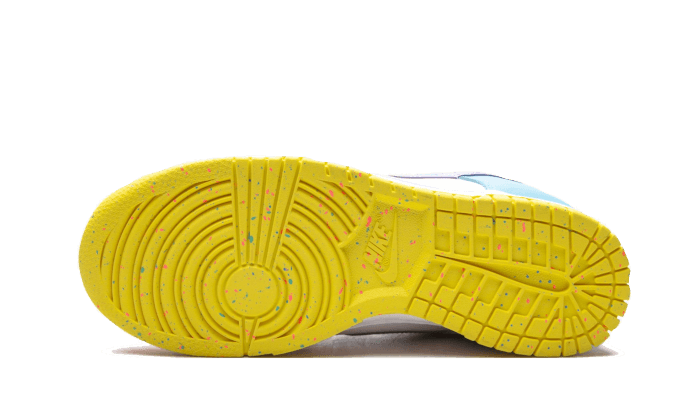 Là Nike Dunk Low SE Easter Visualizza una tomaia in pelle bianca, sublimata da pannelli in pelle rossa, turquoise, verde e viola. Notiamo una suola macchie Giallo ricordando il marchio Nike sul tallone. L’intersuola bianca porta un tocco di semplicità E armonioso a questa silhouette colorata.