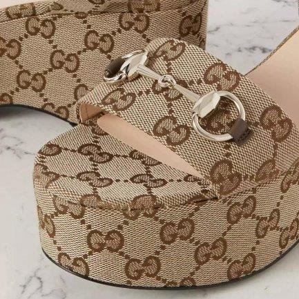 Gucci High Heel Horsebit Canvas Platform
