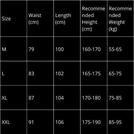 US30 EU46 (M) ,US32 EU48 (L) ,US34 EU50 (XL) ,US36 EU52 (XXL) |