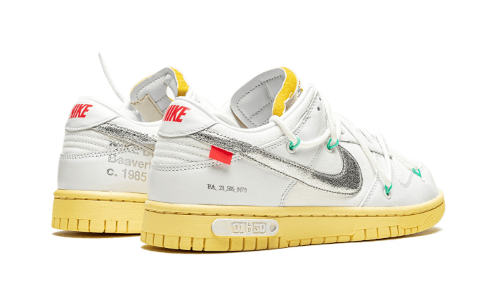 La Off-White x Nike Dunk Low “Lot 1” la prima colorazione di Virgil Abloh e dell’impressionante collaborazione “Lot 50” o “Dear Summer” Dunk di Nike del 2021. Successo della collezione “The 10” di Abloh e Nike del 2017, una delle la pi grande collaborazione di sneaker di sempre, la campagna “Lot 50” del duo trova 50 diversi arrangiamenti della classica scarpa da basket bassa, ognuno con materiali e abbellimenti unici. Qui, nel “Lotto 1”, la tomaia realizzata in pelle bianca per un look senza tempo. Uno Swoosh in pelle argento metallizzato appare su entrambi i lati e il marchio “Nike” arancione ricamato sul tallone. Abloh aggiunge un sistema di allacciatura secondario alla tomaia oltre alla tradizionale configurazione di allacciatura che appare sopra la linguetta in nylon grigio con imbottitura in schiuma a vista. L’aspetto simile a un cordino elastico stato visto per la prima volta nella collaborazione Nike Dunk di debutto di Off-White del 2019. Il testo Helvetica di Off-White stampato sul lato mediale. Sotto i piedi, un’intersuola color crema vintage con un inserto “Lot 1 of 50” completa il look. Data di uscita: 2 agosto 2021